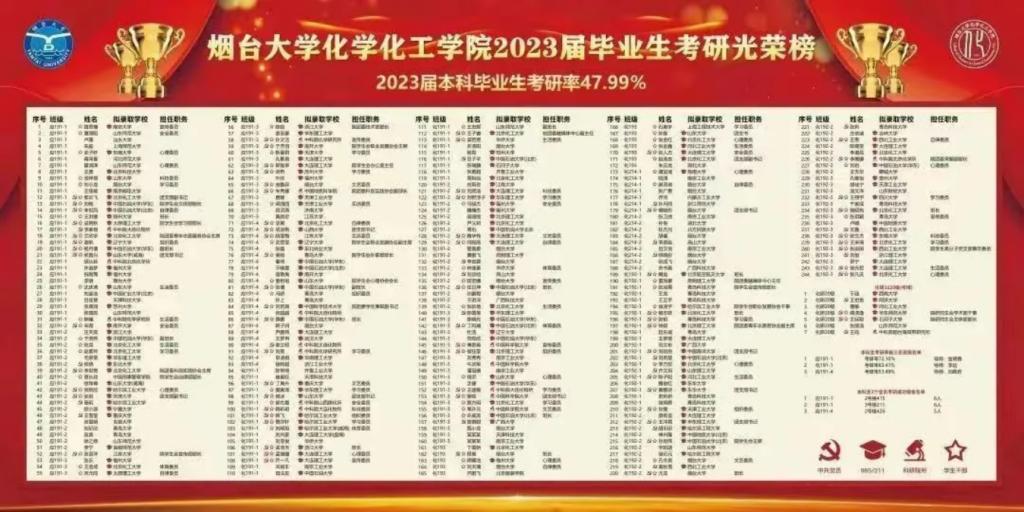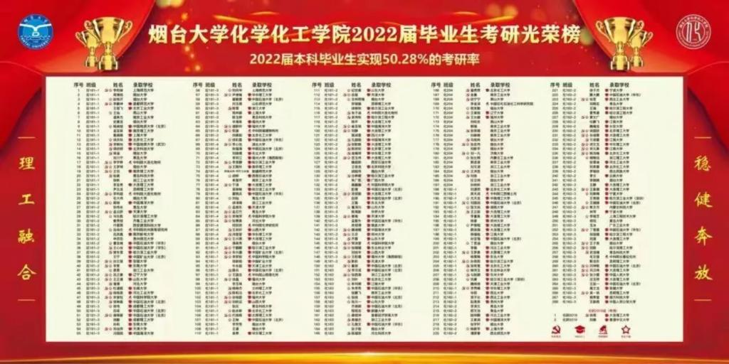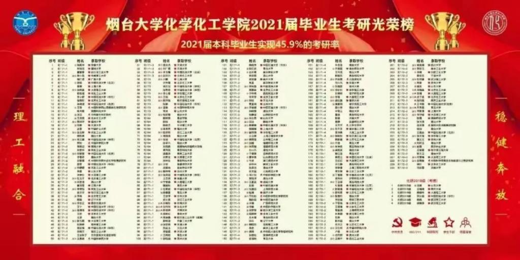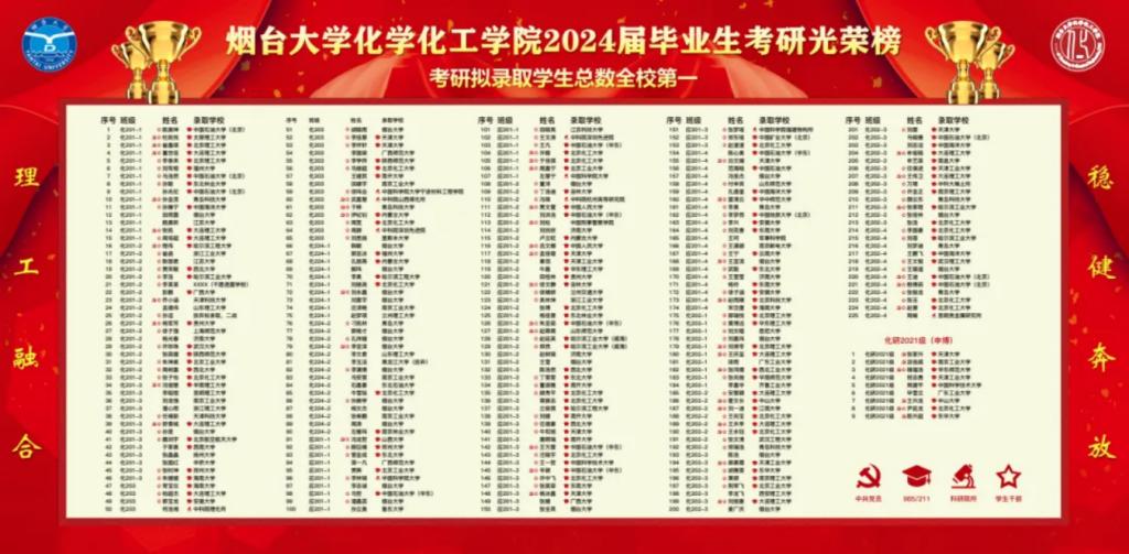 烟台大学化学化工学院2021、2022、2023、2024届本科毕业生考研光荣榜。