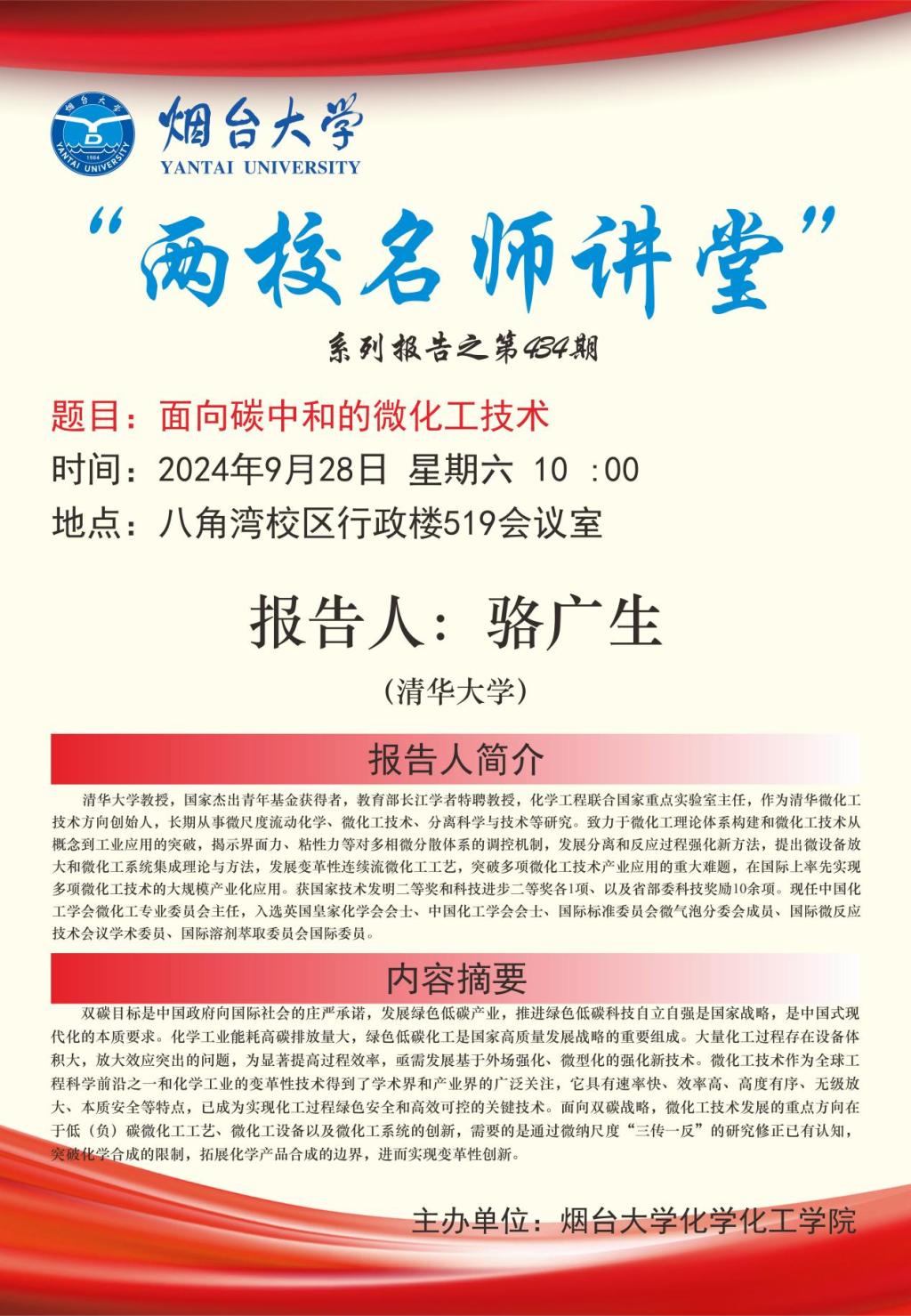 化院高质量发展战略咨询委员会成立大会暨化工学科论坛 高水平讲座预告