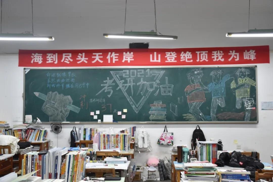 天亮了,在考研人马上抵达教室之际,志愿者们悄悄离开,教室又重新归于平静,只有板报、便签和零食,在证明着,他们来过……