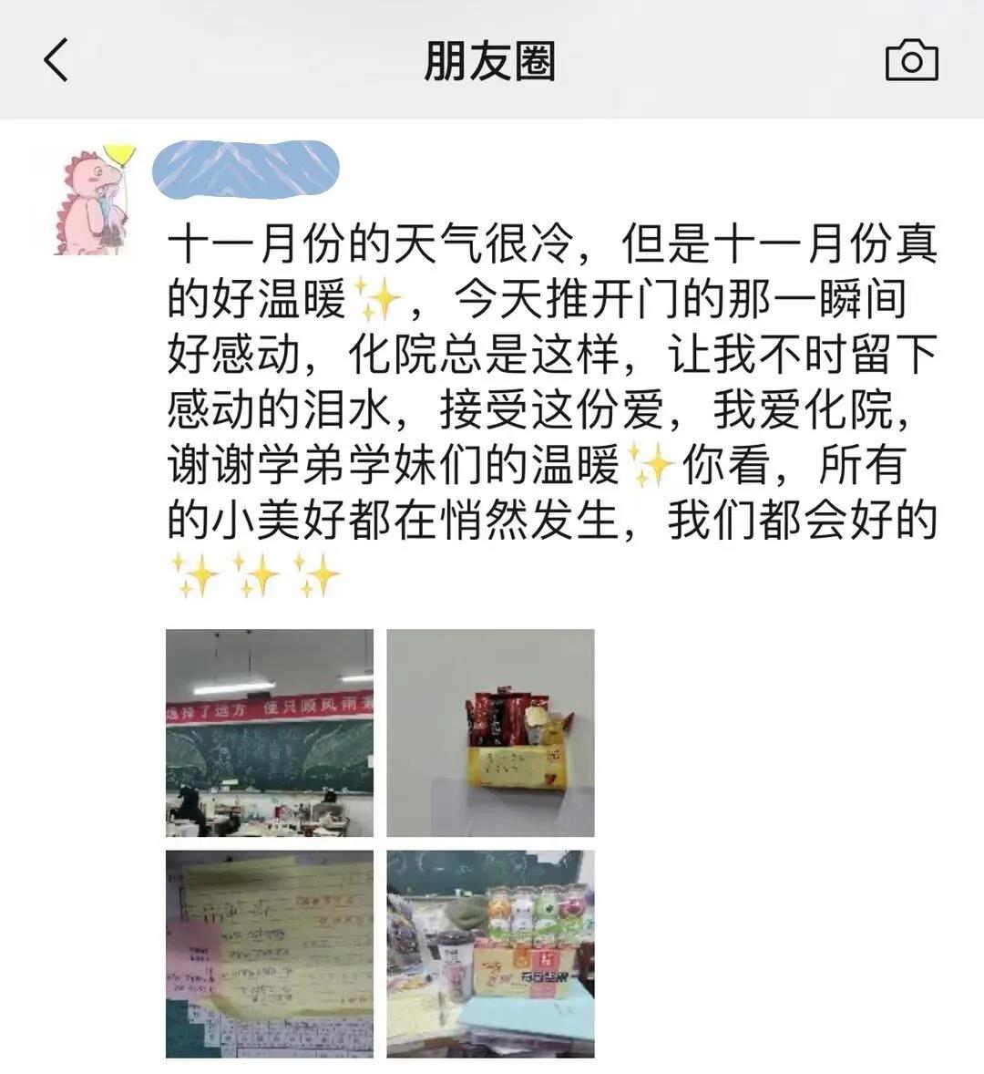 一张张暖心的便签,承载着学弟学妹们对考研人追梦之旅的祝福。