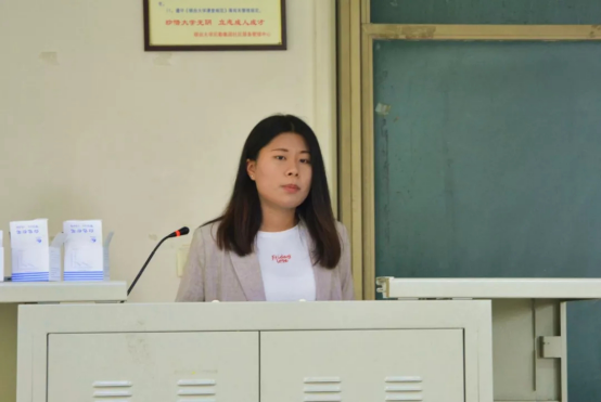 宣讲会伊始,首先上台宣讲的是院科创实践协会副主席闫博雯,她主要就暑期社会实践的含义、形式、选题等方面进行了介绍,同学们对社会实践活动有了初步的认识。紧接着,她详细的介绍了社会实践的具体流程,包括组建团队选择课题、前期答辩、媒体宣传培训、出征仪式以及后期答辩评优等。