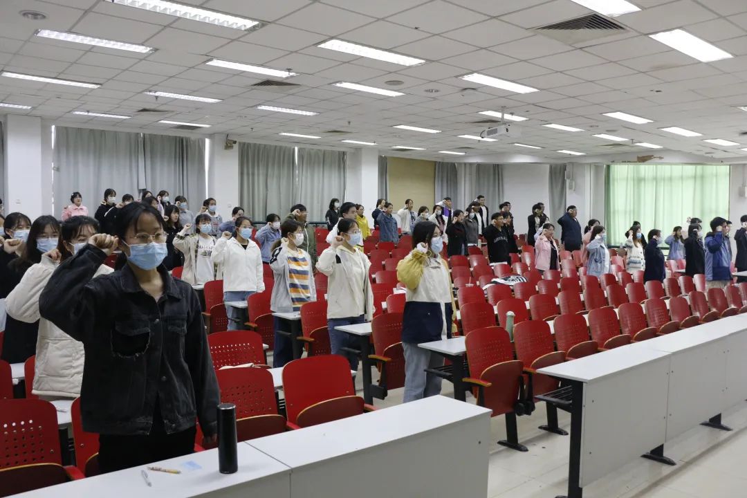 由院学生会负责人员进行诚信教育,强调考场纪律。随后,全体同学在领誓人的带领下高举右拳进行了庄严宣誓:“牢记师长嘱托,不负烟大厚望;认真规范答题,严守考场纪律;守住人生底线,公平参与竞争;珍惜人格名誉,做光荣化院人!”明确考试纪律与诚信考试的重要性后,学生轮流在诚信考试承诺书上签字。