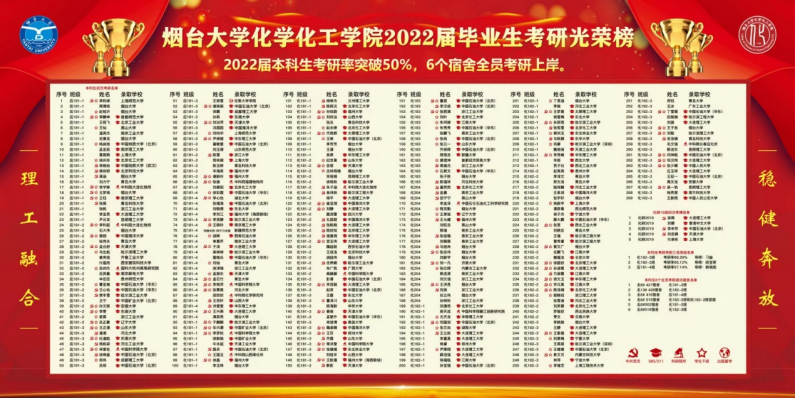 学院利用化学、化工、高分子材料等多学科交叉、相互渗透的优势,形成了“基础研究—应用研究—工程研究”为一体的科研和育人特色。学院在读研究生、本科生2000多人。学院学风优良,人才培养质量稳步提升。近五年,学生相继获得全国大学生化工设计竞赛一等奖、山东省大学生“挑战杯”科技作品竞赛特等奖、全国大学生化学实验创新设计大赛一等奖、全国大学生“挑战杯”科技作品竞赛总决赛二等奖。本科生整体就业率,连续多年接近100%。2022年,本科生初次考研率超过50%。毕业生在化工、医药、材料、能源、资源、轻工、环保等领域广泛就业,深受用人单位好评。