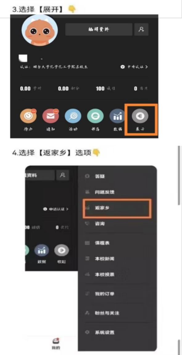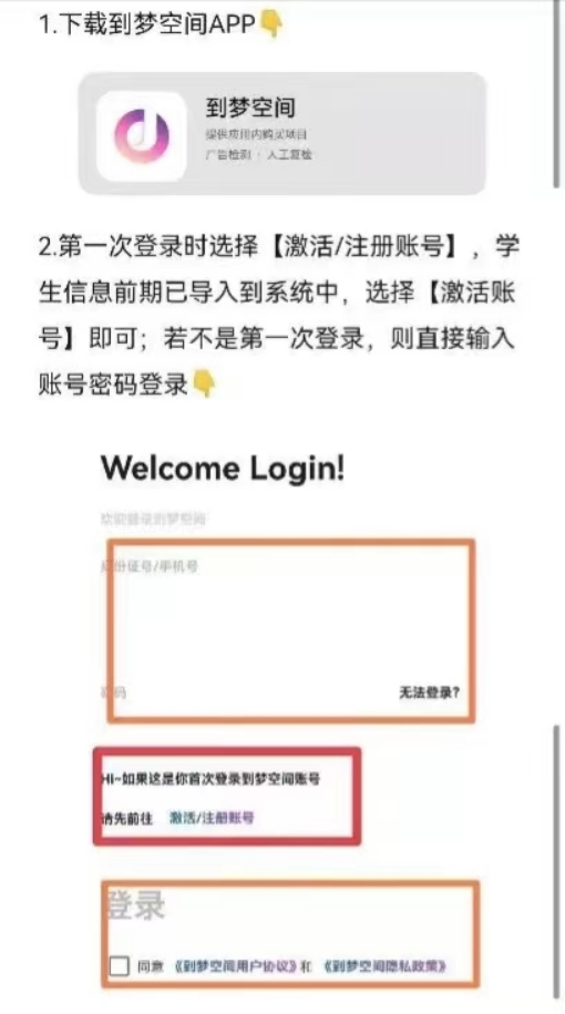 下载【“到梦空间”APP】→第一次登录时选择【激活/注册账号】→选择【激活账号】(学生信息前期已经导入)→进入APP页面点击下面最左侧本校→点击【返家乡】选项→选择【岗位列表】→状态选择【报名中】,找到相关岗位并进行报名;若不是第一次登录,则输入账号密码后重复上述操作。