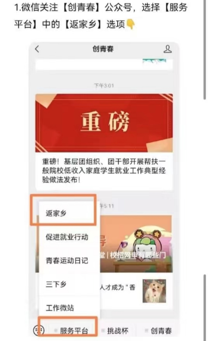 家乡公众号报名部分地区会通过团委公众号发布“返家乡”“三下乡”“青鸟计划”系列推文,介绍活动内容及要求,公布实习实践岗位。可以通过关注地方团委公众号,在规定时间按照要求报名参与寒暑期青鸟计划实习实践活动。