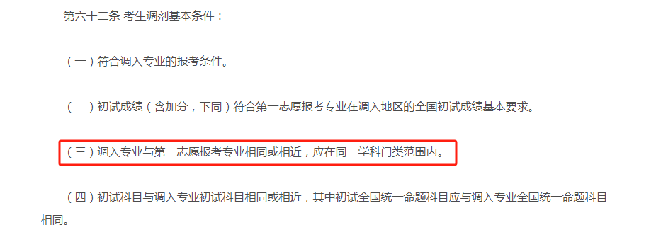 2024年调剂要求改为"原则上,调剂考生第一志愿专业与调入专业相同相近,或初试科目与调入专业初试科目相同相近。"。调整给予了高校一定的自主权,尤其是允许一些跨专业调剂,显然是积极回应交叉学科人才培养的大方向要求。