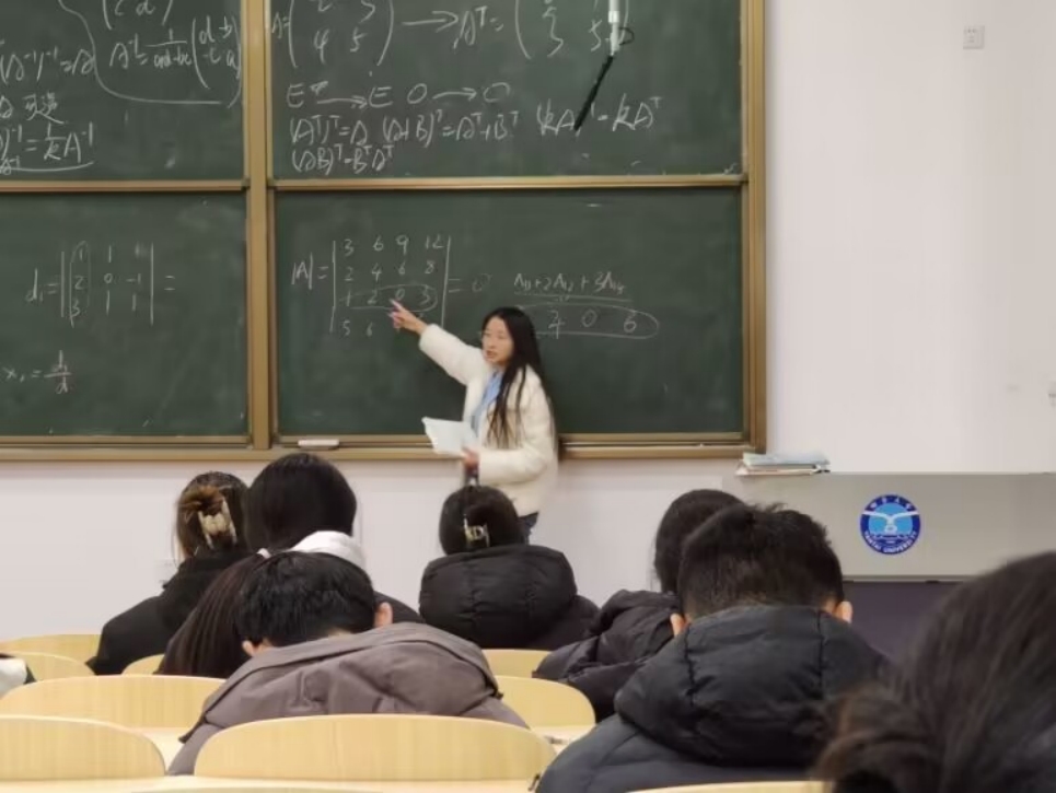 图为学生讲师化222-3班满梦叶讲授线性代数课。