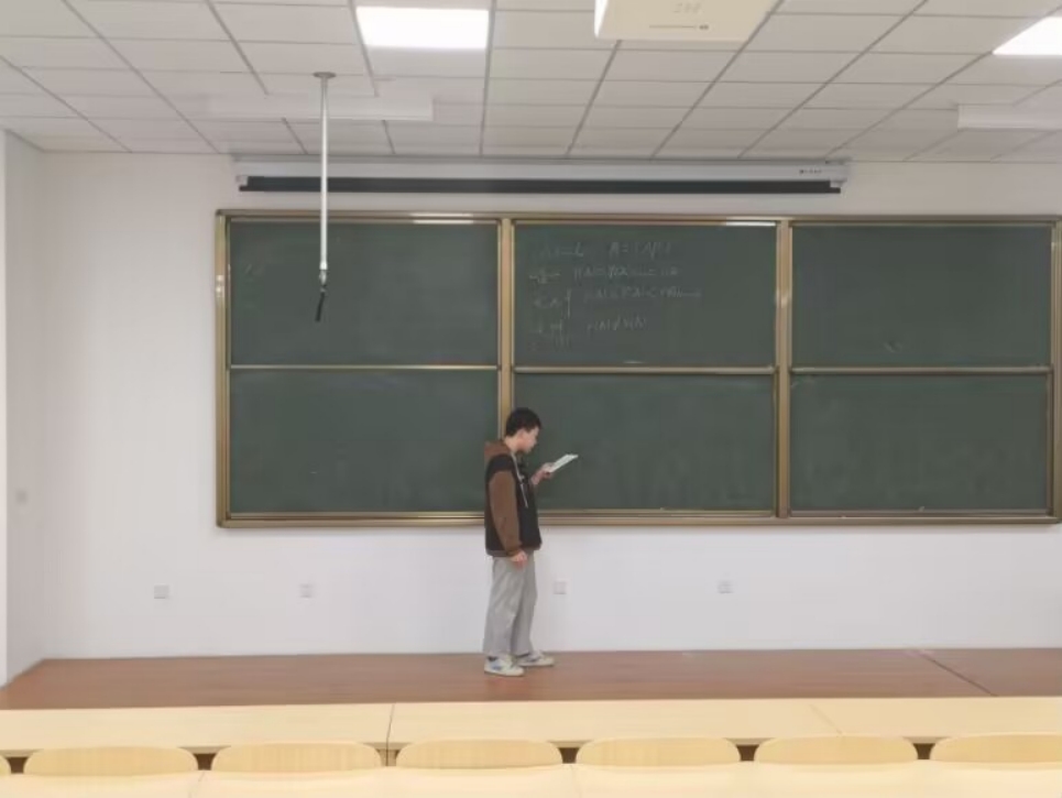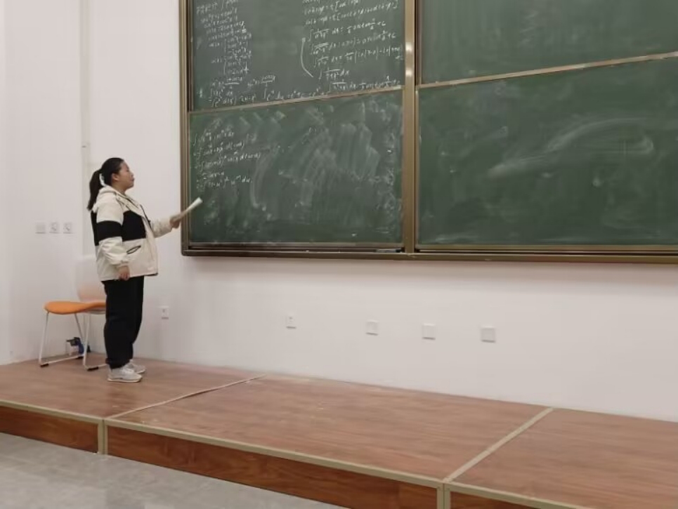 图为学生讲师化232-3班路双豪同学在讲高数。