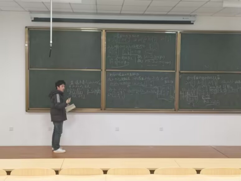 图为学生讲师化232-3班张驰为同学们讲高数题。