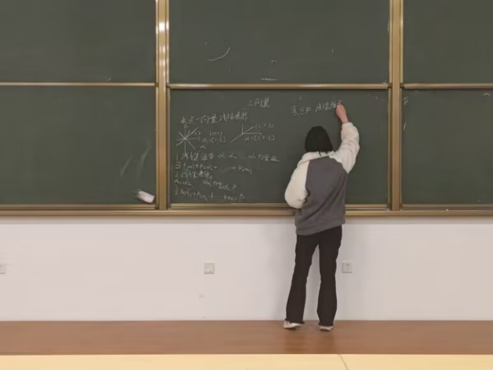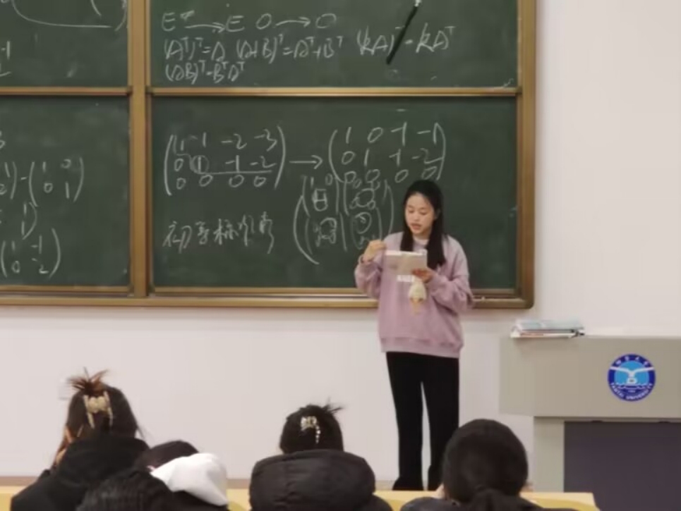 图为学生讲师应221-1班林诺瑶在讲线性代数。