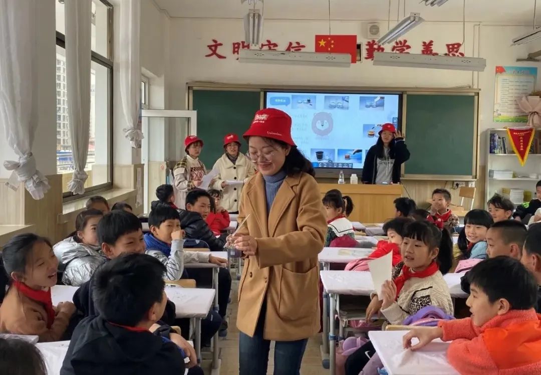 来到烟大附小戴上“小红帽”