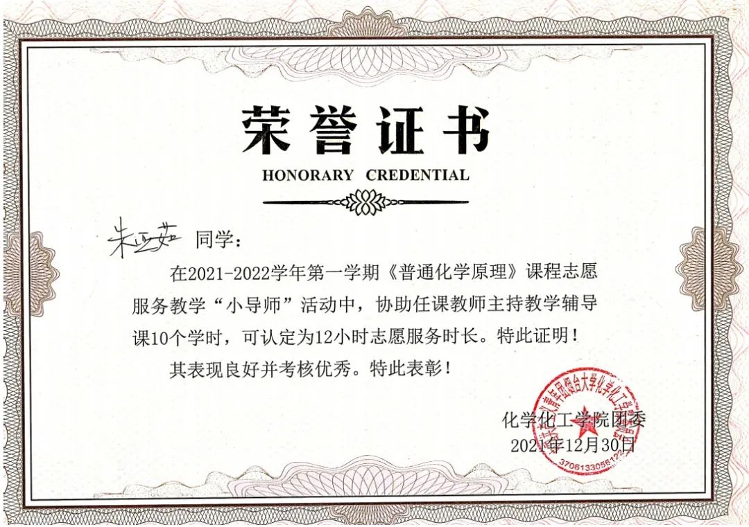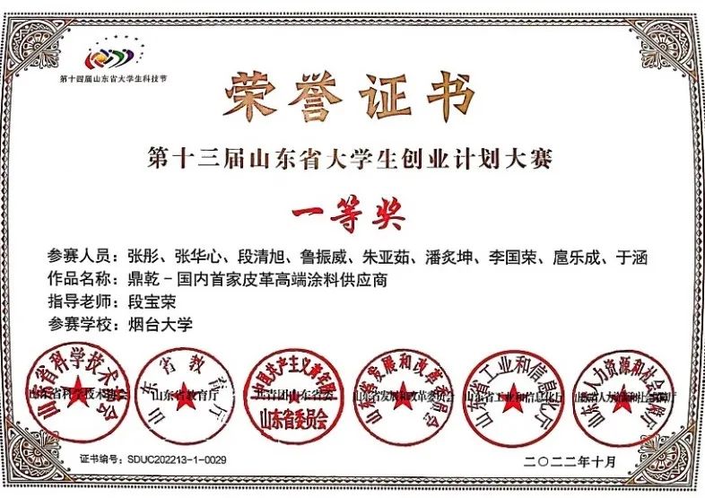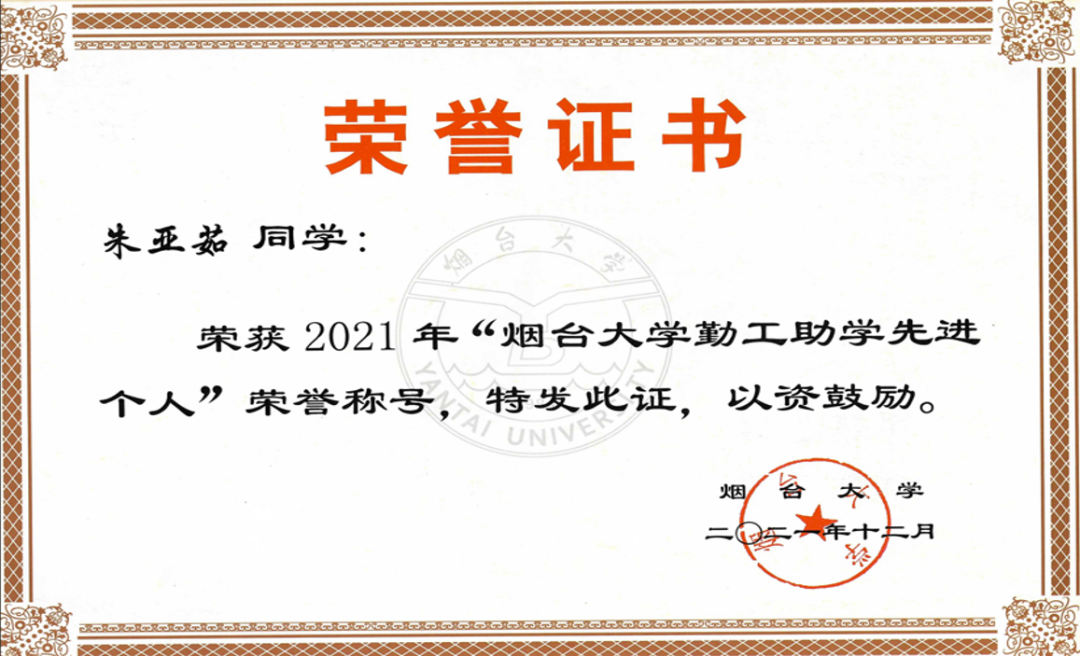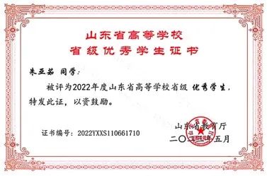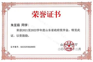 取得“2021-2022学年度山东省政府奖学金”