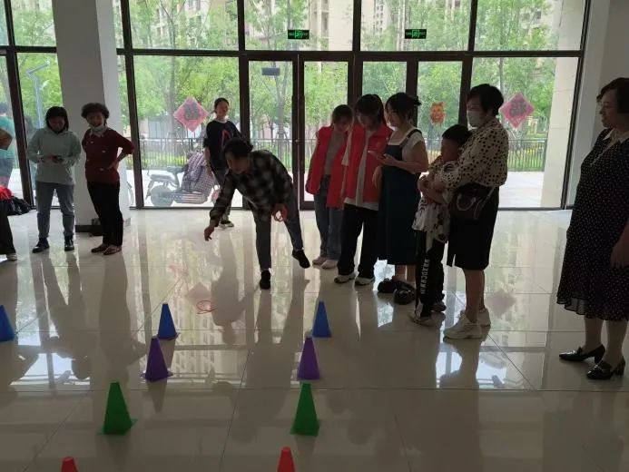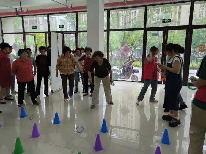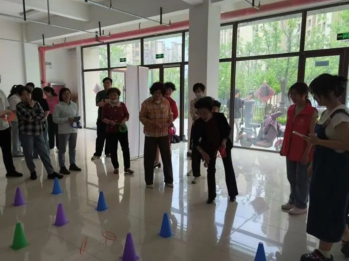 活动室的另一处,一场套圈游戏正在上演,志愿者们与社区的老人们共同参与这场充满童趣的活动,笑声和欢呼声此起彼伏,温暖了整个空间。
