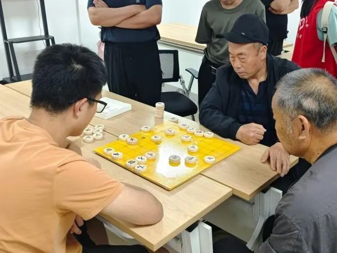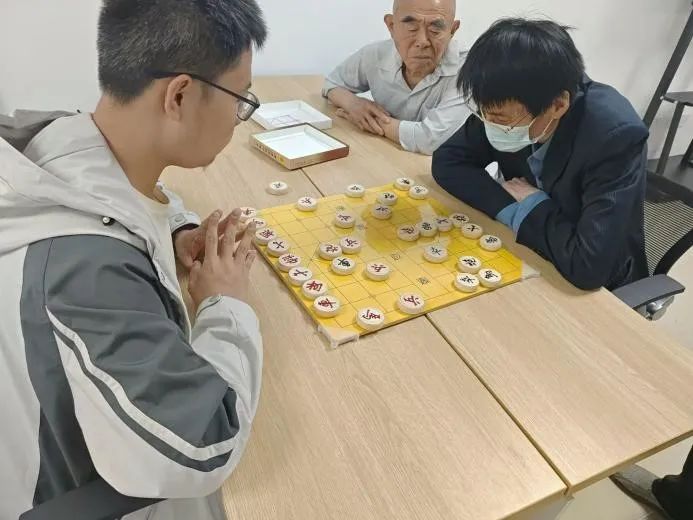 在社区活动室的一角,几张象棋桌旁,志愿者们与社区的大爷们正展开了一场场智慧与策略的对决。棋盘上,楚河汉界分明,黑红两军严阵以待,每一颗棋子的落下都似乎带着历史的回响。“姜还是老的辣!”老人们展现出了深厚的棋艺,志愿者们却是虚心请教,乐在其中。