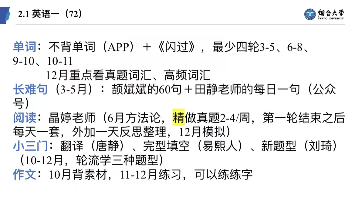 对于数学,他建议最好在暑假期间完成网课的学习,因为暑假是一个绝佳的学习时间,是实现弯道超车、超越自我的好机会。在温习一遍知识点后,应留出充足的时间来刷真题,通过实战来巩固和提升自己的数学能力。同时,他也强调了夯实基础的重要性。他告诫大家切忌眼高手低,否则只会捡了芝麻丢了西瓜。