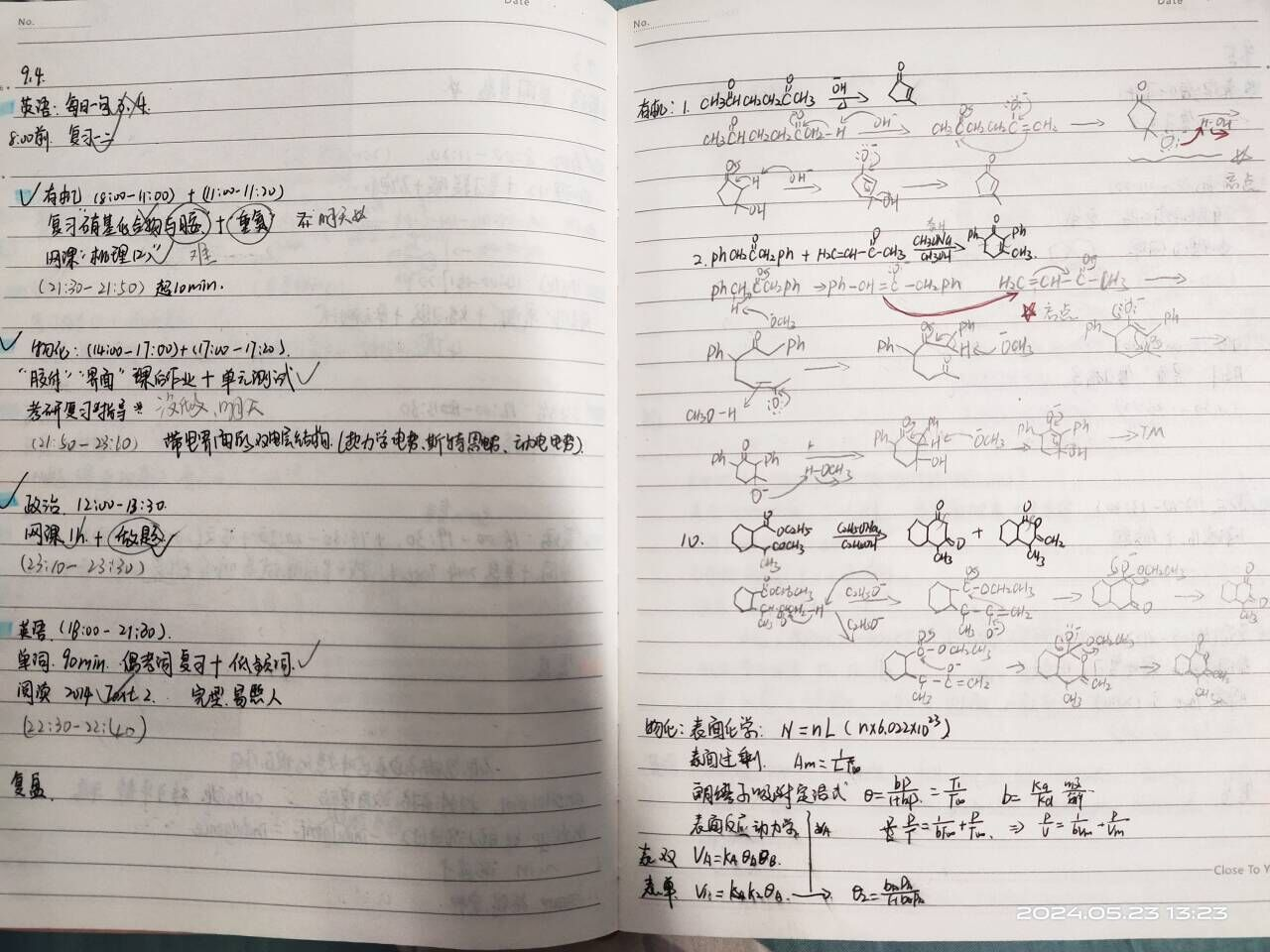 在物理化学科目的复习上,牛和旭给出了以下几点建议:极为关键的一点是要认真细致地画“思维导图”,不能只画个大概,因为只有这样,才能清晰地明白这一部分所讲的内容。牛和旭还提到公式记忆一定要准确,可以先自己推导一遍公式,这样更有利于记忆。此外,一定要及时且详细地整理错题,并做好分类整理。