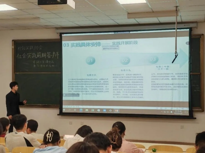 为了让同学们更好地了解社会实践,学院科创实践协会于4月底组织开展了社会实践宣讲会,向同学们详细介绍了社会实践的背景、具体要求以及流程。活动还邀请了本学院和其他学院优秀的社会实践团队代表进行了分享,增进了同学们对暑期社会实践的了解,激发了同学们投身社会实践的热情。