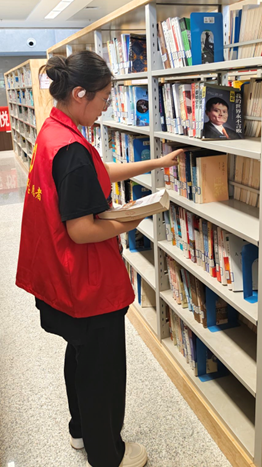 曹润同学正在整理图书。