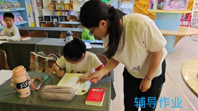杜楚蕊同学正在辅导小朋友们写作业。
