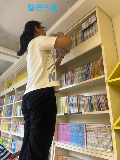 杜楚蕊同学正在整理书籍。