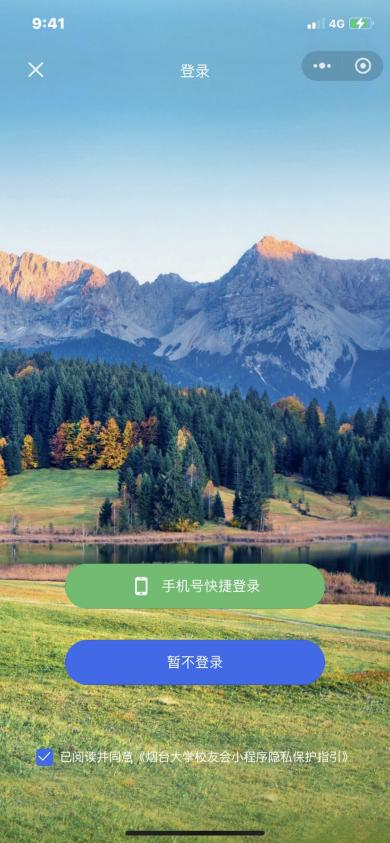 校友会”小程序→底部菜单点击【我的】→点击头像右侧的【游客】→进入用户登录页面→【登录/注册】→【上传头像】→【手机号快捷登录】。