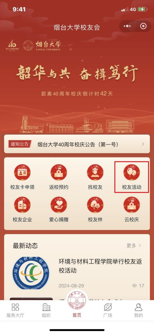 校友可以通过“校友活动”服务,报名参加学院或校友举办的线上、线下活动。