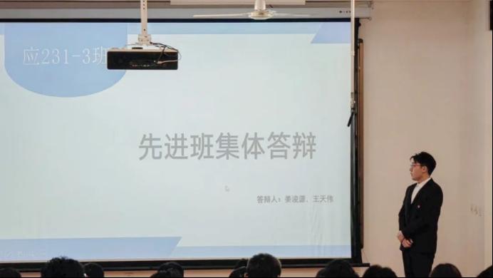 主持人王博文同学介绍答辩会流程及获得先进班集体的基本条件。