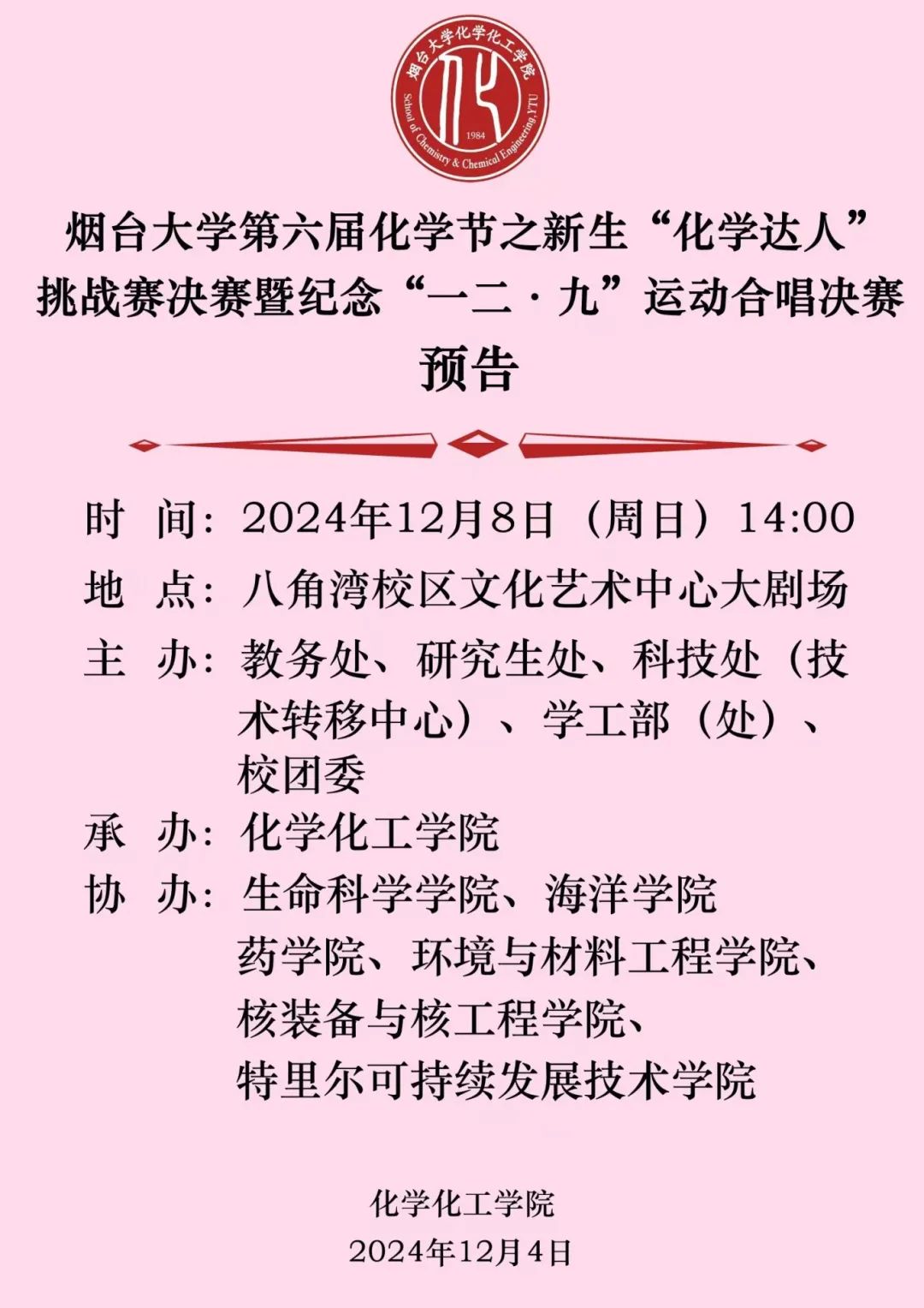 91吃瓜 第六届化学节之新生“化学达人”挑战赛决赛暨纪念“一二·九”运动合唱决赛预告