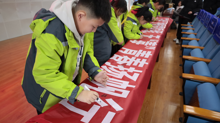 宣讲中,禁毒队采用情景短剧的形式,通过角色扮演生动呈现禁毒知识,现场反响热烈。活动尾声,同学们在横幅上郑重签名,并立下“珍爱生命,远离毒品!”的铿锵誓言。