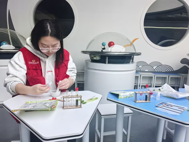 在“探索大脑的奥秘”志愿服务活动中,化241-6团支部的杨玉玲同学化身为知识的引航者。她通过生动的科普讲座、趣味知识问答,带领小朋友们走进科学的奇妙世界,让科学探索的种子在孩子们心中悄然生根发芽。与此同时,志愿者团队走进沛霖职业培训学校,与同学们热情交流课程内容,并帮助他们整理零件用具。杨玉玲用热情与行动点燃了孩子们对科学的向往,让科学的火种照亮更多人的梦想之路!