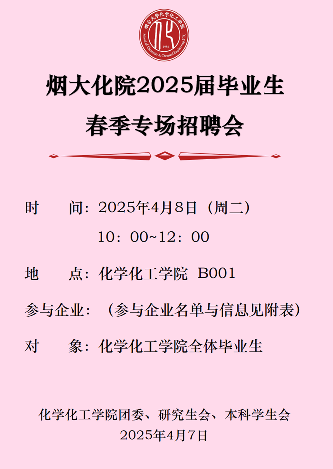 “化小水”的就业服务 | 烟大化院2025届毕业生春季专场招聘会预告