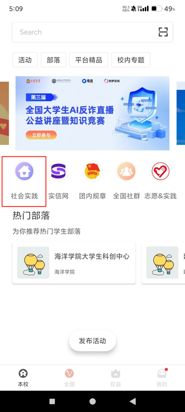 实践交流QQ群:790381934,群内会发布寒暑期“青鸟计划”实习实践活动、“三下乡”、“返家乡”社会实践通知,感兴趣的同学或有疑问的同学可以加群了解。