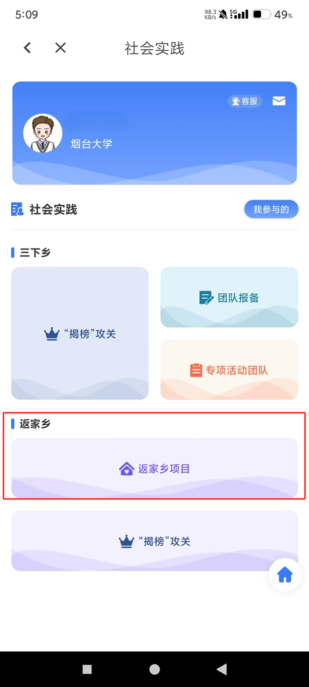 下载【“到梦空间”APP】→第一次登录时选择【激活/注册账号】→选择【激活账号】(学生信息前期已经导入)→进入APP页面点击中间部分【社会实践】选项→点击【返家乡项目】→点击【岗位列表】,→状态选择【报名中】找到相关岗位并进行报名;若不是第一次登录,则输入账号密码后重复上述操作。