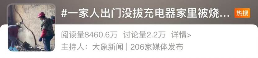 4月12日,贵州遵义一家人出门前没拔手机充电器,不仅自家全屋烧成废墟,还要承担楼下住户的损失。