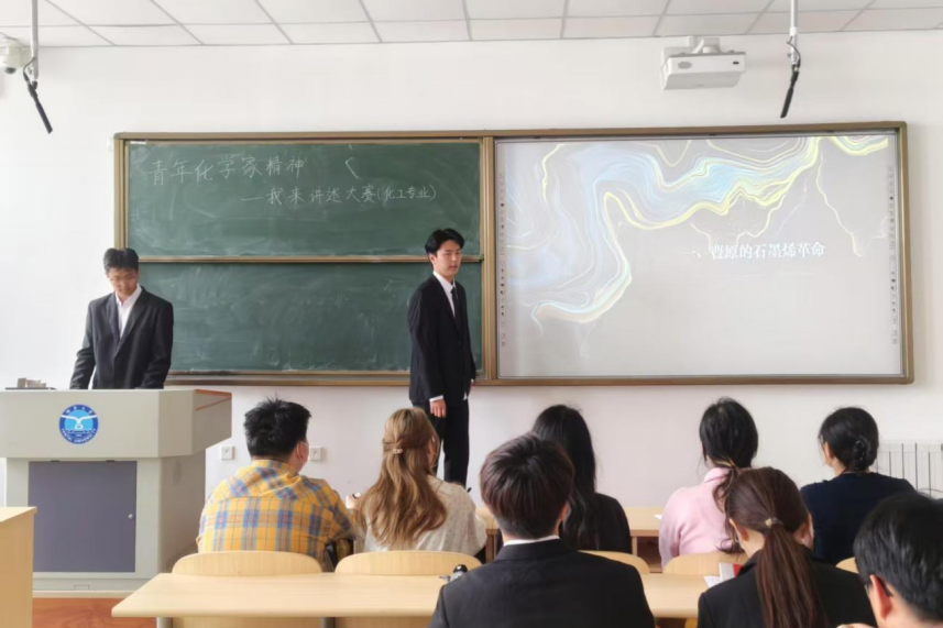 高分子专业的赛场则展现出独特的学科视角:高241-2与高241-3团支部联合讲述刘凯、黄毅教授及侯德榜先生的事迹,将芯片研发与家国担当紧密结合;化232-1团支部以AI创业者杨文峰为例,诠释科技创新的时代意义;高241-1团支部通过“侯氏制碱法”的发明历程,号召青年从科研、格局、情怀三维度传承精神。最终,化232-1团支部以富有感染力与专业度的表达技巧斩获第一,彰显高分子领域的创新活力。