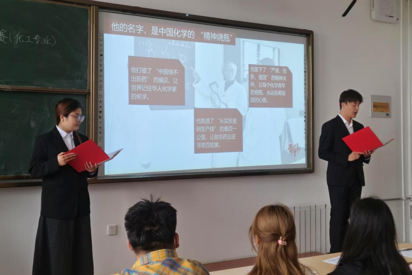 “化学是打开物质世界的钥匙,青年是推动科学进步的先锋。”主持人吴思涵的开场词点燃了化工专业赛场的热情。化231-1团支部以黄鸣龙改良还原法的科研突破为切入点,展现“严谨、创新、报国”的精神内核;化241-6团支部则聚焦曹原、颜宁等当代学者,阐释创新与协作的时代价值;化231-3团支部以屠呦呦为例,系统解读青年化学家精神的传承路径。赛程尾声,化231-1团支部凭借扎实的内容与感染力拔得头筹,让“精神烧瓶”的光芒照亮每个化学青年的科研初心。