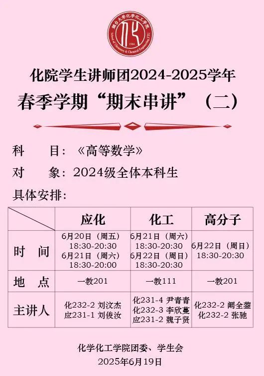 期末学业辅导 | 化院学生讲师团2024-2025学年春季学期“期末串讲”(二)