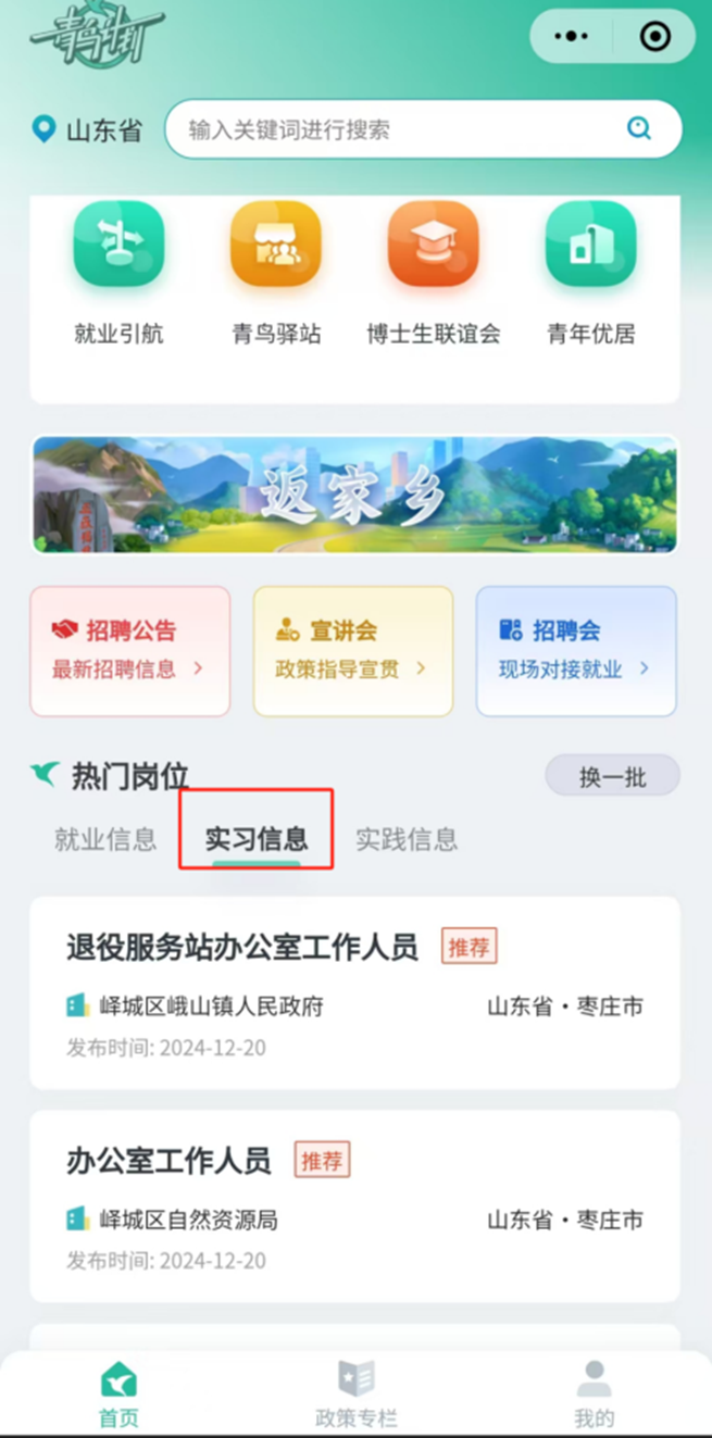 “青鸟计划”,自2019年11月启航,是共青团山东省委、山东省人力资源社会保障厅联合推出的一项意义深远的“人才回流计划”。它宛如一座坚实的桥梁,横跨实习实践、高质量就业、“双创”空间和校地合作四大领域,横向汇聚各级党委组织部门、团委、人力资源社会保障部门的丰富岗位资源,纵向联动省市县强大的工作力量。从人才政策的供给端精准发力,致力于吸引山东籍学子和人才回归故土,共同谱写“引凤还巢”的壮丽篇章。