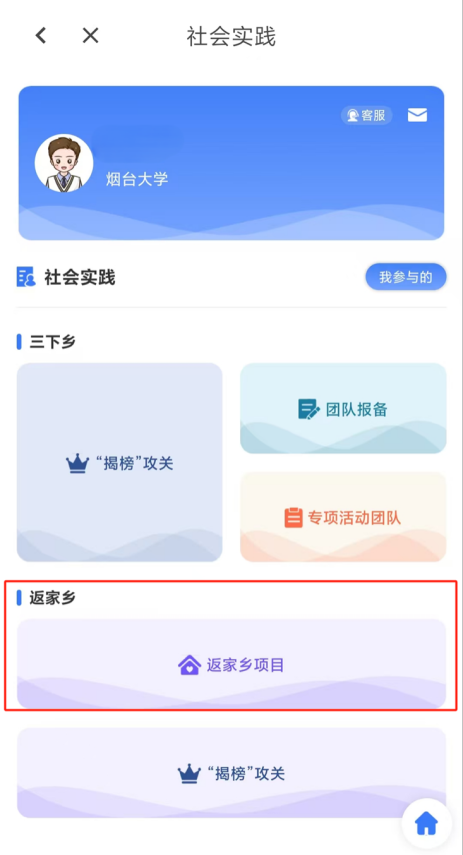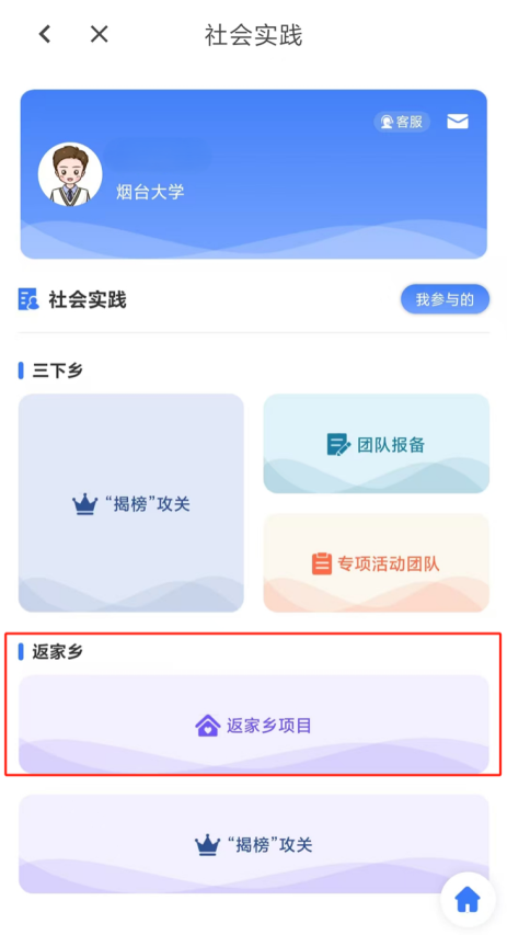4.点击【返家乡项目】。