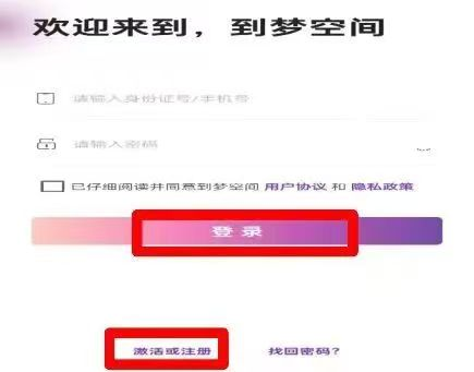 2.用激活“到梦空间”APP用户账号时设置的账号密码【登录】→选择【返家乡项目】。
