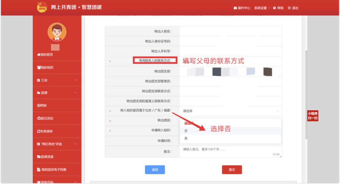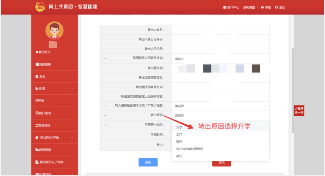 03团员发起转出申请后须及时联系团支部或上级团组织的管理员进行审批