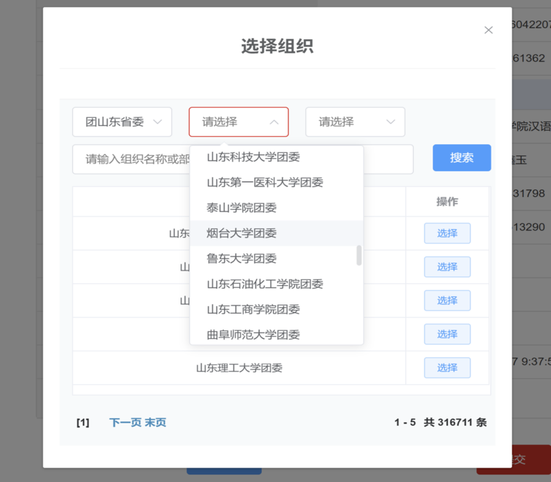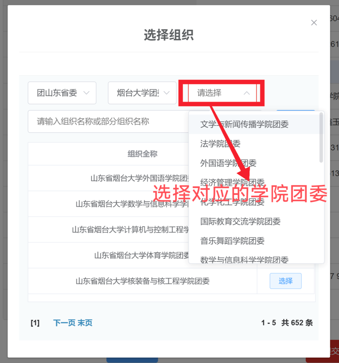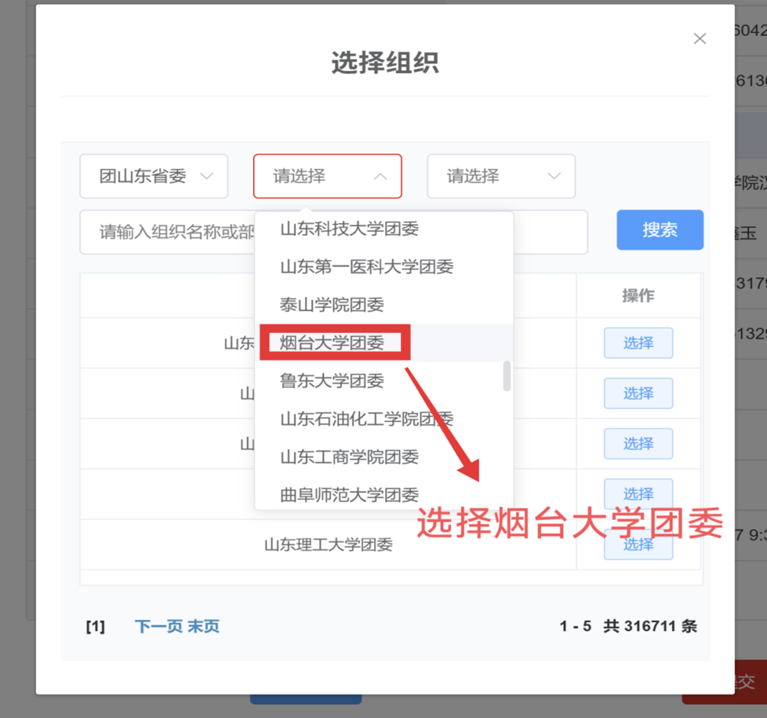 (4)选择“团山东省委”后,在第二栏处选择“91吃瓜