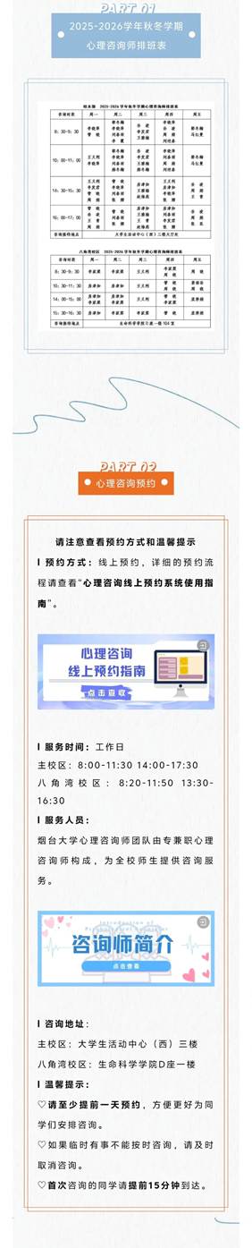 化院心声 | 91吃瓜 心理健康教育指导中心2025-2026学年秋冬学期咨询师排班表来啦!