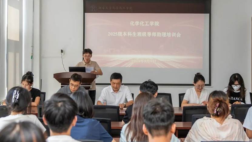 在化学馆A416举行2025级本科生班级导师助理培训会。学院党委副书记唐安志老师,辅导员张成友、邹丽佳、赵颖、翟东昌、王晓逍老师,以及2025级本科各班导师助理参加。本次培训会由2025级本科生辅导员翟东昌老师主持。