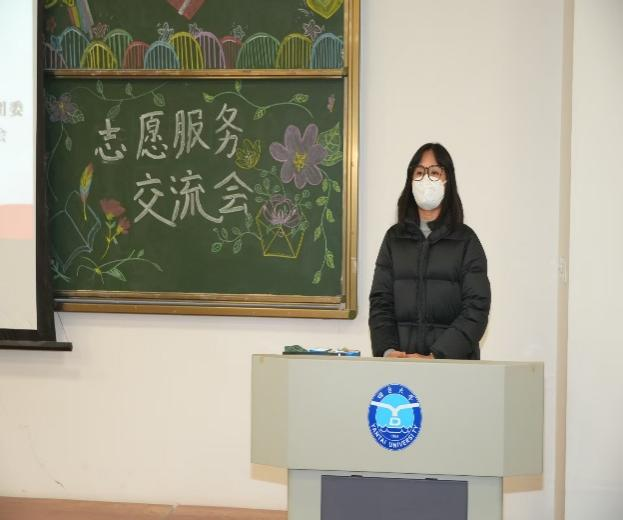 随着主持人清亮的开场声落,志愿服务交流会正式拉开帷幕。志愿服务部部长王语情首先登台,宣读了本次参与答辩的个人及团支部名单。
