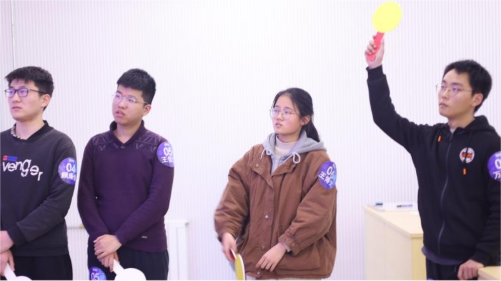 在第一场中,9号化学化工学院张健超,11号化学化工学院夏丹丹率先晋级,其余四名选手因分数相同进行了一场加时赛。最终晋级第四轮比赛的是:9号化学化工学院张健超、11号化学化工学院夏丹丹、6号核装备与核工程学院王博文、7号药学院万延辉。