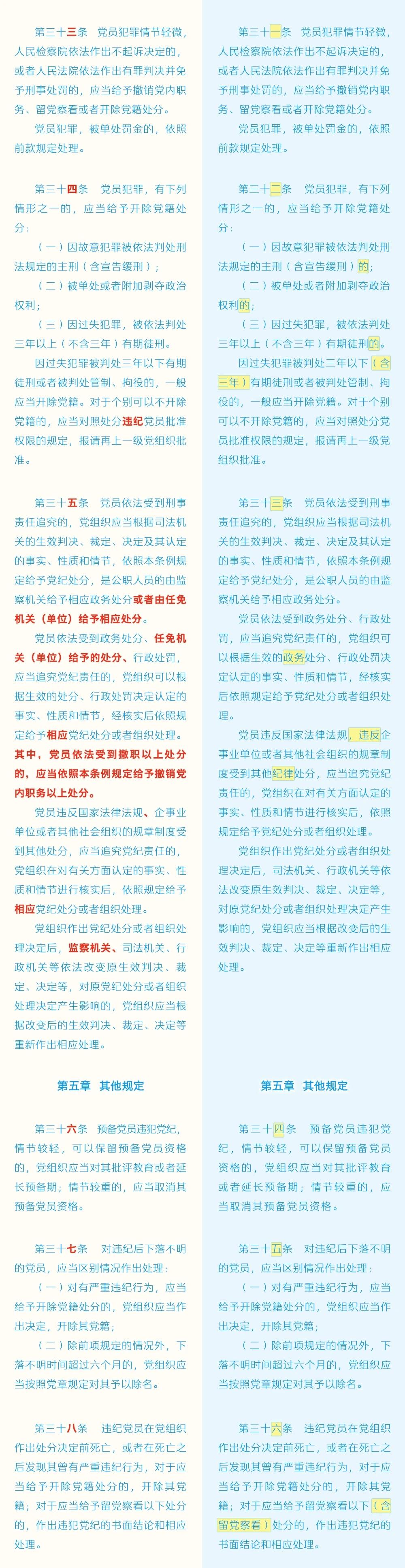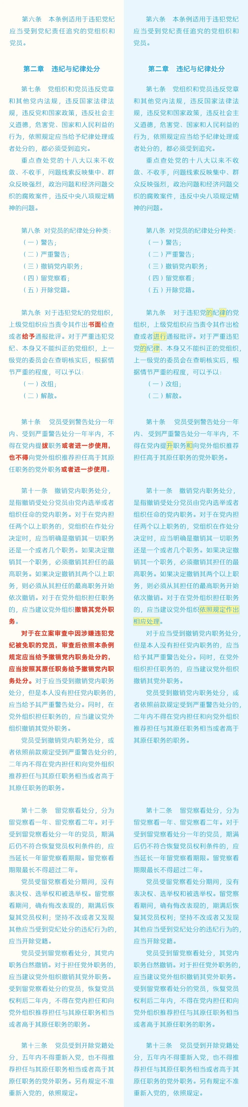 党纪学习教育 | 《中国共产党纪律处分条例》修订前后对照表