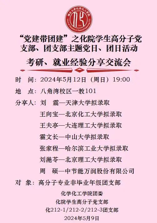 “党建带团建”之化院学生高分子党支部、团支部主题党日、团日活动——考研、就业经验交流分享会