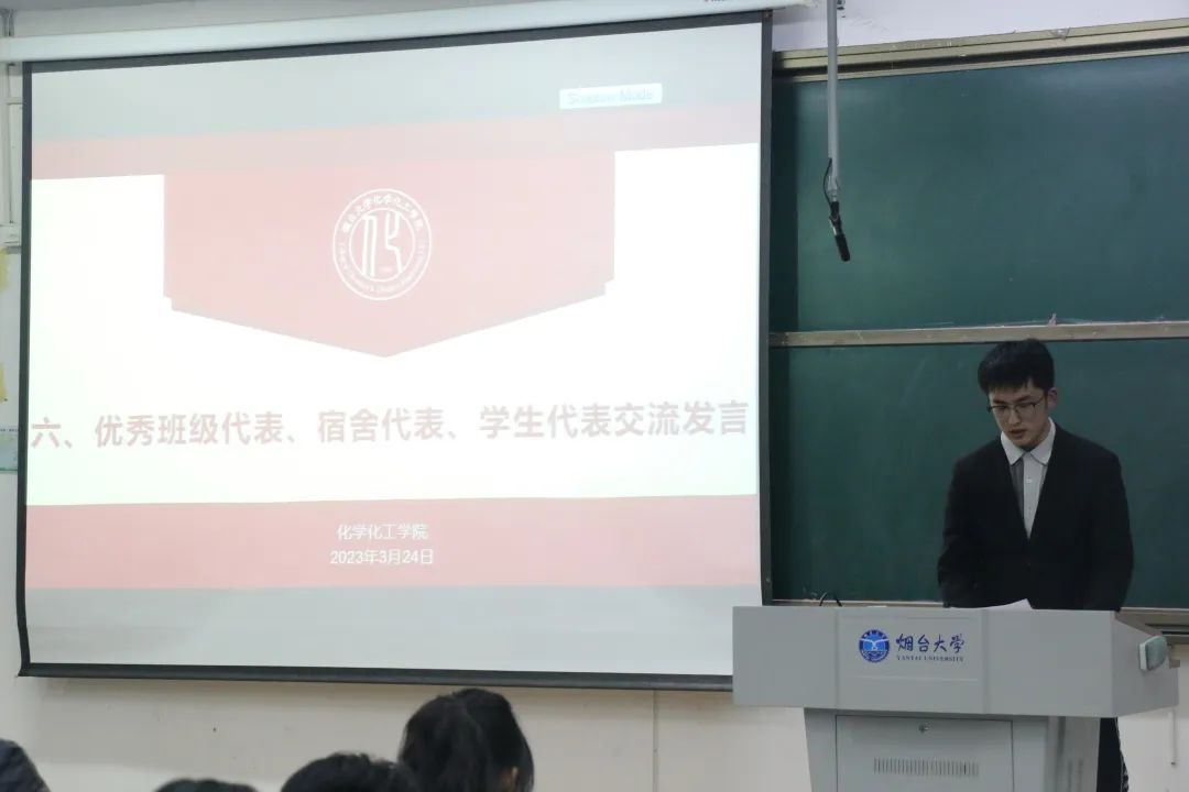 随后,赵锦泽老师和赵颖老师分别代表院团委、院学工组宣读了化学化工学院共青团表彰文件和学生服务教育管理工作表扬文件,表彰了在上学期在学院学工工作中表现优异的学生集体和个人。