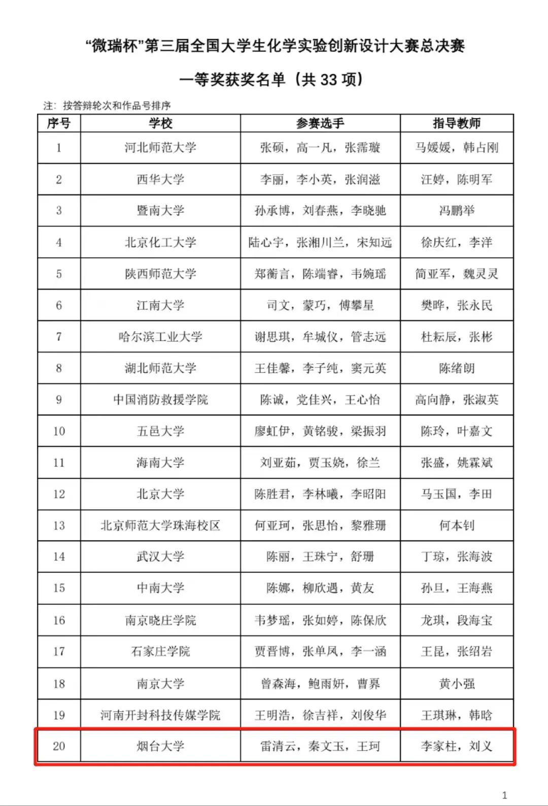 据悉,“全国大学生化学实验创新设计大赛”是全国性的大学生学科竞赛,旨在夯实大学生的化学基础知识、基础理论和基本技能,强化大学生发现问题、分析问题和解决问题的能力,培养大学生的创新意识、创新能力和创新精神,建立展示大学生实践创新能力的交流平台,推动我国高等学校实验实践教学模式改革,是我国化学学科竞赛的最高等级赛事。